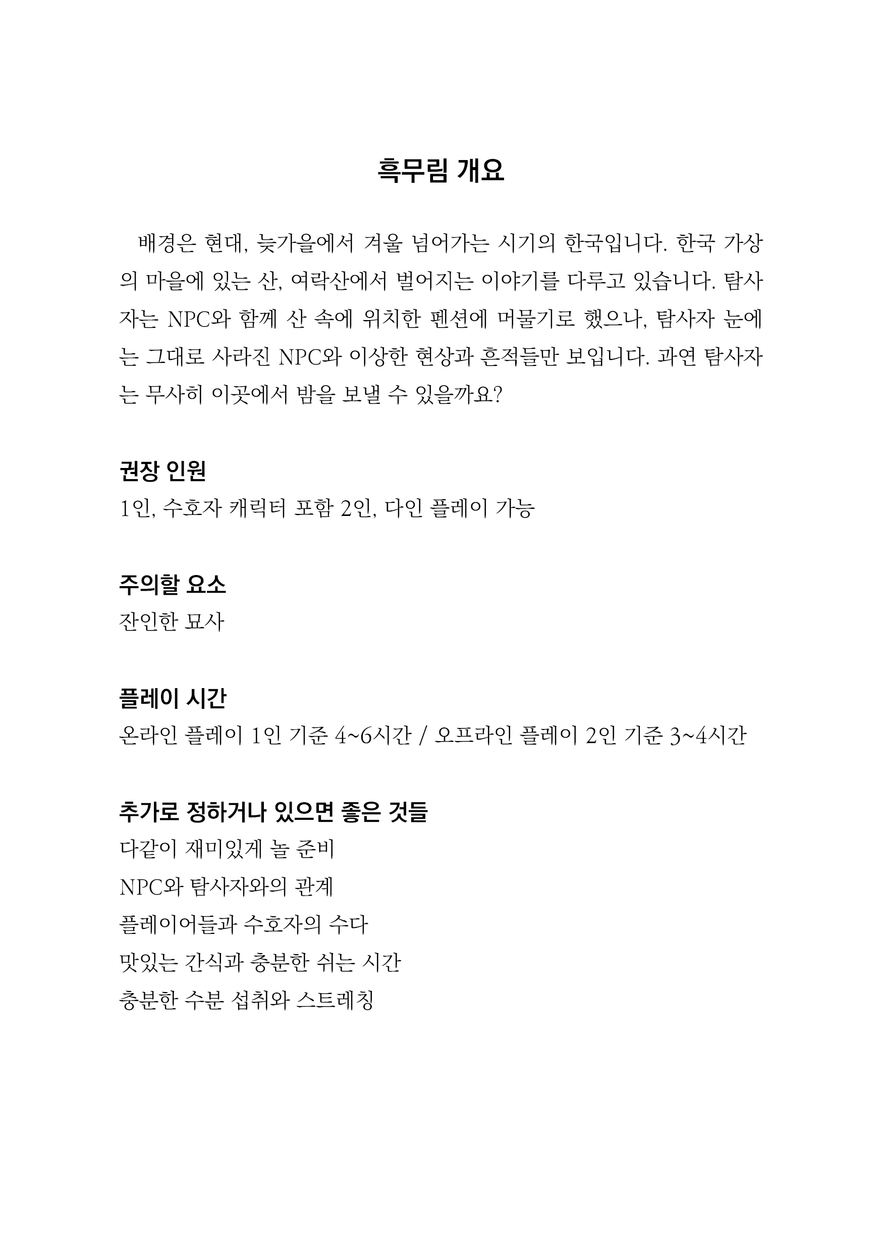 ※시나리오집 PDF는 구매자를 위한 PDF이므로, 중고 판매할 시에는 받은 PDF 삭제 부탁드립니다.